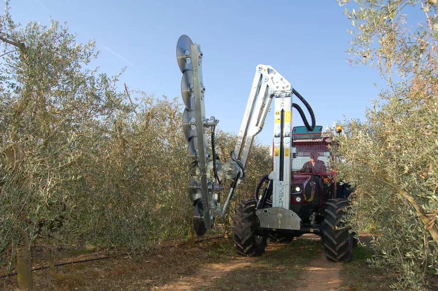 – Apto para la prepoda de árboles y la descarga de ramaje en cultivos leñosos, como frutales, olivos o almendros, incluso en marcos altos o vegetación densa.
